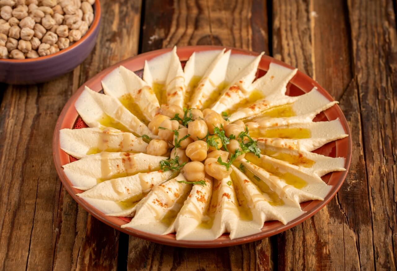 حمص مسلوق، طحينه، ليمون و زيت زيتون