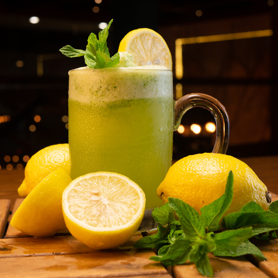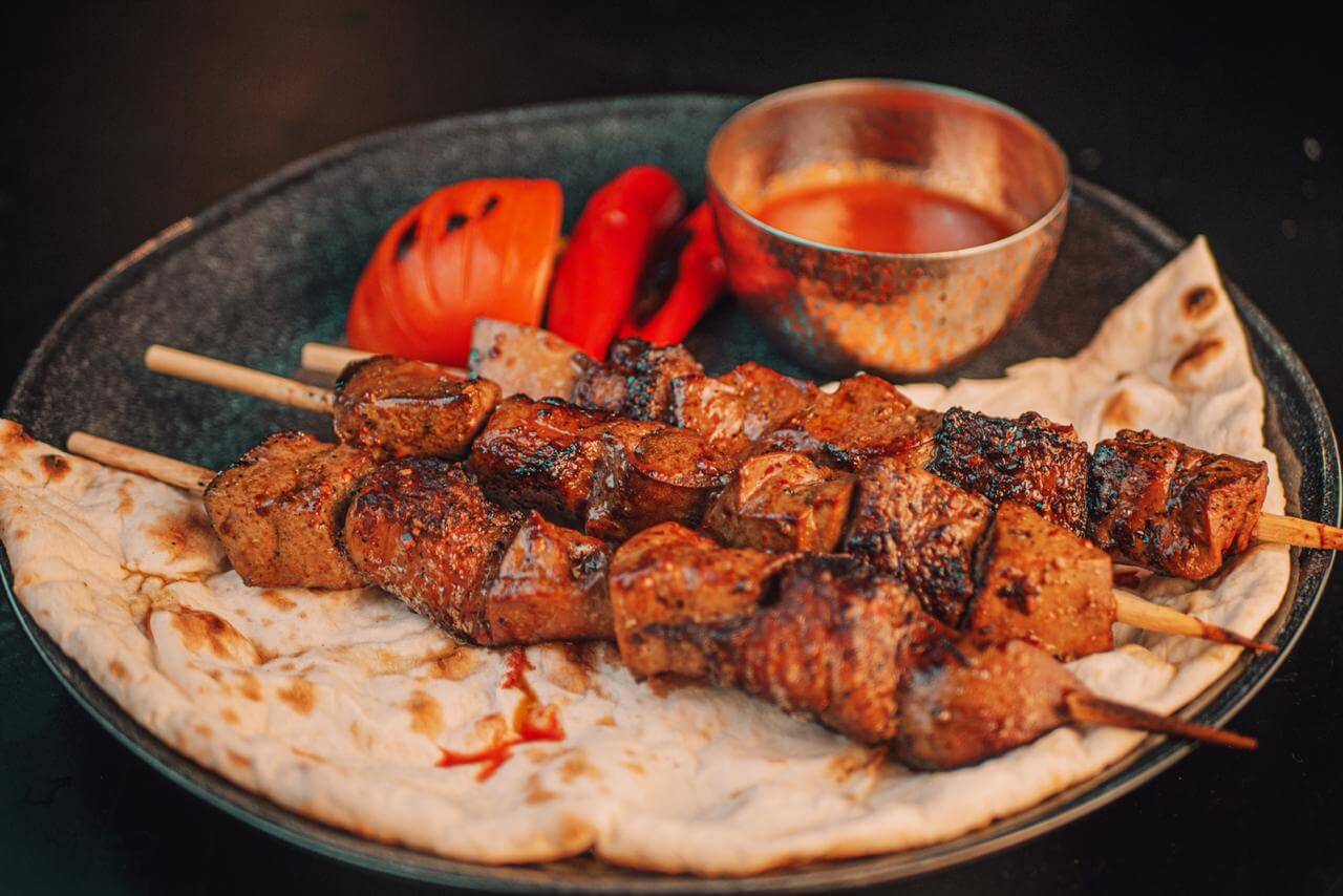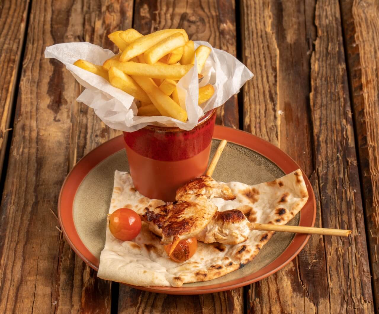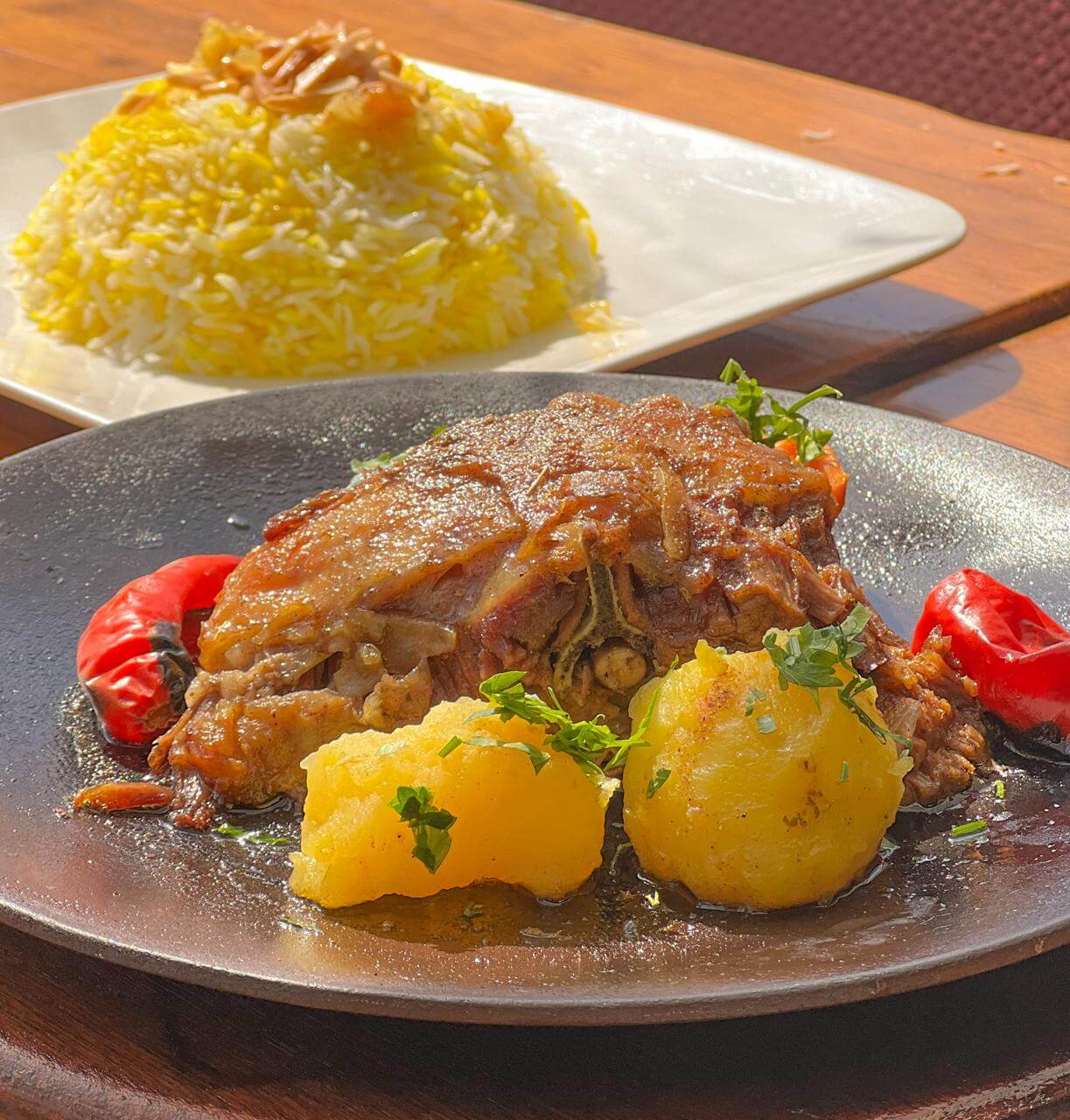 طماطم، خيار،خس، أعشاب طازجة، زيت زيتون، دبس الرمان، خبزمقلي و فلفل رومي مع عصرة ليمون